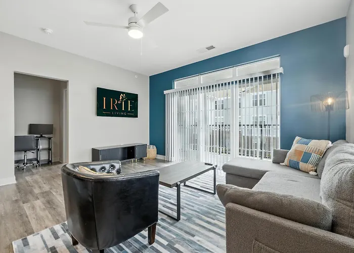 El Apartamento Irie Living Retreat Kg 2Bd Gym Pool Brand New ofrece una cocina con todos los utensilios necesarios para preparar comidas. El aeropuerto Internacional de Indianapolis, el más cercano, está a 40 km de este apartamento.